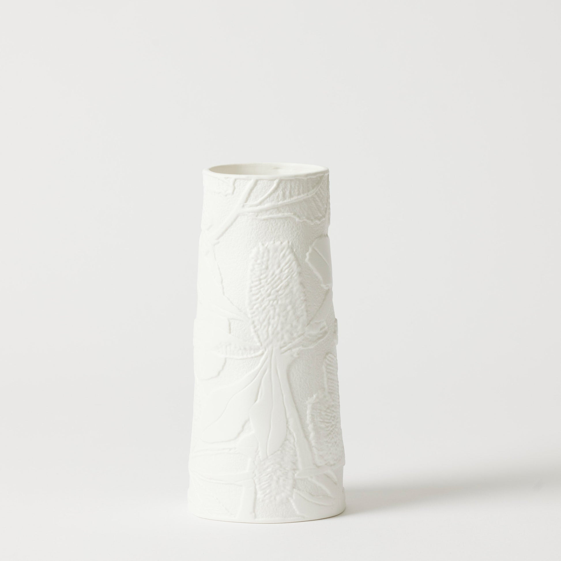 Crafted from durable porcelain and featuring an embossed floral pattern, the Banksia Tall Vase creates a sophisticated and minimalist look in any space. Watertight and versatile, it’s ideal for showcasing a lovely floral arrangement or serving as a sculptural display.